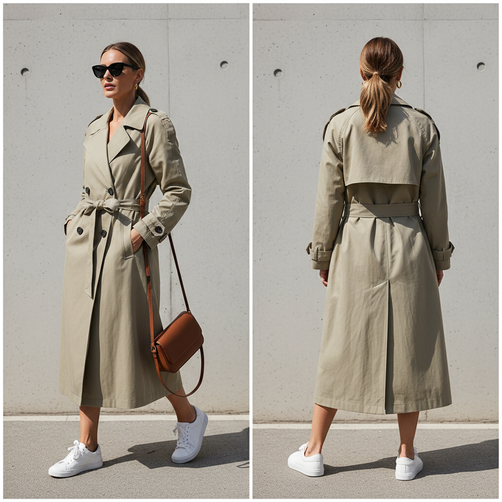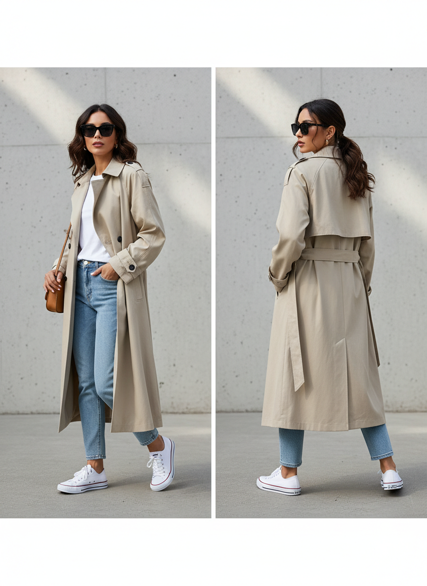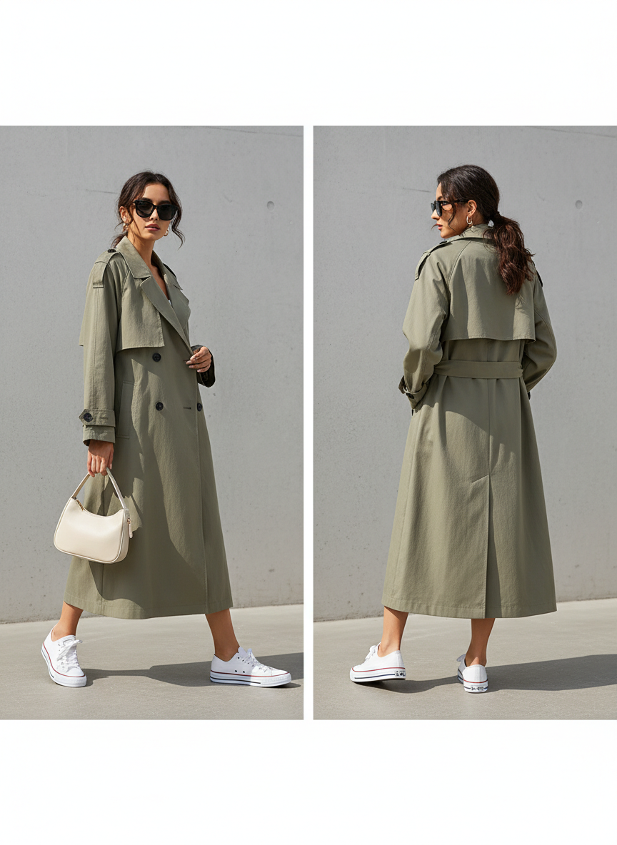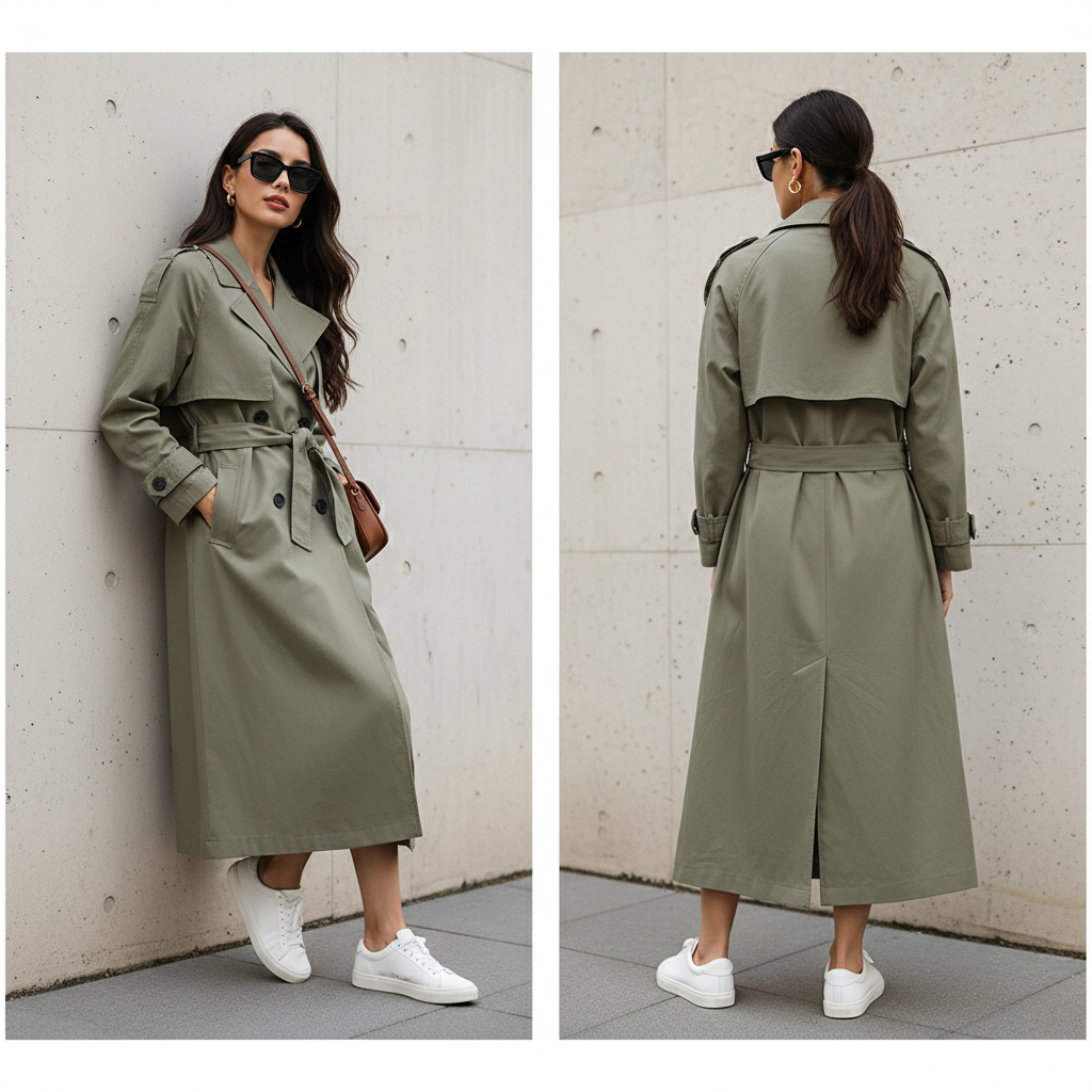 De Camille Trench is ontworpen voor vrouwen die houden van een vrouwelijke pasvorm zonder in te leveren op comfort. De ceintuur benadrukt subtiel de taille, terwijl de soepele stof licht met je meebeweegt bij elke stap.